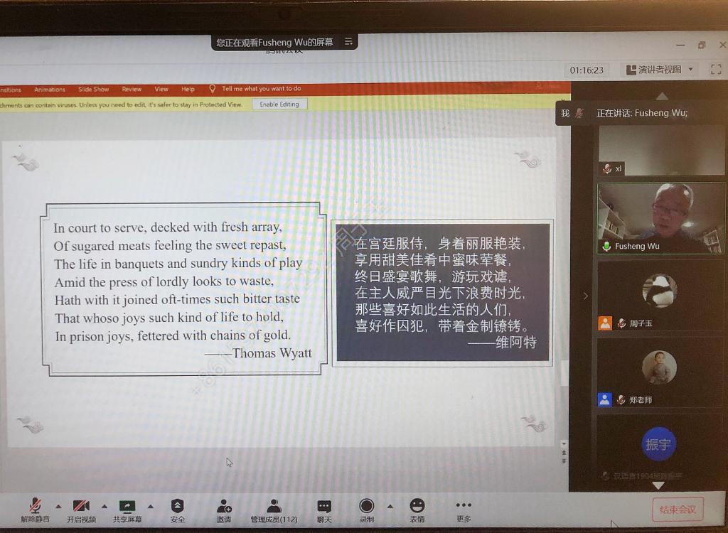讲座:吴伏生教授举办线上讲座“中英传统诗歌中的宫体怨情诗”
