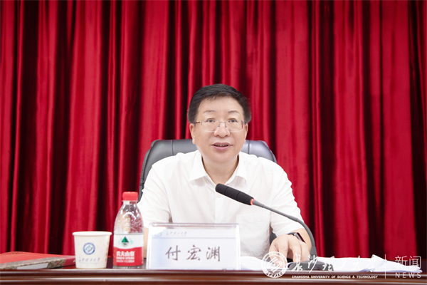 付宏渊指出,全党开展学习贯彻习近平新时代中国特色社会主义思想主题教育,就是要坚持不懈用习近平新时代中国特色社会主义思想凝心铸魂,切实加强党的思想建设,推动全党更加深刻领悟“两个确立”的决定性意义,更加自觉增强“四个意识”、坚定“四个自信”、做到“两个维护”,始终在思想上政治上行动上同以习近平同志为核心的党中央保持高度一致。学校党委把主题教育作为重大政治任务抓紧抓实,紧紧围绕高质量发展核心任务,锻造强大“聚合力”,跑出发展“加速度”,把主题教育成果切实转化为引领推动事业发展的实际成效。一是理论学习入脑入心,思想伟力领新航。把理论武装作为首要任务,组织全校党员干部在深学细悟中保持清醒头脑、站稳政治立场、坚定政治方向,做到理论学习跟得上、跟得紧、跟着走,确保学习工作有制度、有规范、全覆盖。二是调查研究走深走实,师生满意谱新篇。学校党委扎实开展“走找想促”活动,突出学校长远发展的重点问题、核心竞争力突破的关键问题、师生普遍关注的突出问题“三个聚焦”,围绕“推动高质量发展十件大事”“惠及民生十件实事”等课题开展调研,抓实抓细专项研究、专项整改、专项督查。三是检视整改动真碰硬,破题攻坚开新局。坚持领导带头以上率下,完善机制狠抓落实,注重统筹突出重点,坚持问题整改与学校“十四五”规划、年度工作要点一体推进,对于重点难点问题党委多次研究、全校一盘棋集中资源统筹推进。四是推动发展彰显成果,学校建设立新功。完成了重点学科布局调整、校区功能定位优化、3批总额数亿元的实验设备贷款项目“三件大事”,实现了服务大局能力、核心竞争力、教育教学环境“三个提升”。