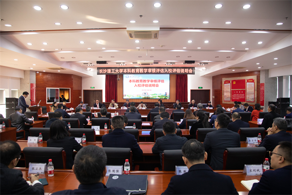 11月27日上午,本科教育教学审核评估入校评估说明会在云塘校区一办公楼九会议室举行。湖南省委教育工委委员、省教育厅党组成员、副厅长左清出席会议并讲话。本科教育教学审核评估专家组组长、西南交通大学原副校长冯晓云和专家组全体成员,校党委书记付宏渊,校长曹一家,全体校领导出席会议。校属单位主要负责人、工作小组全体工作人员参会。