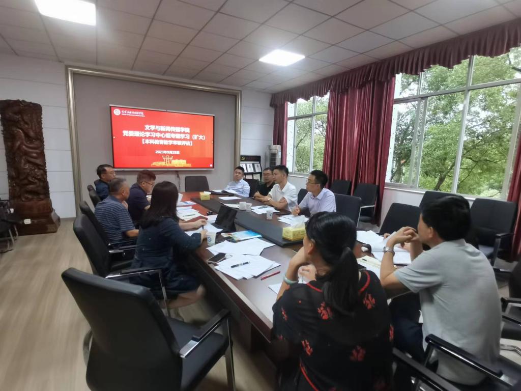 9月28日下午,学院党委理论学习中心组在学院321会议室开展本科教育教学审核评估专题学习,学院各办公室负责人和各系主任、副主任、党支部书记一起参加学习。