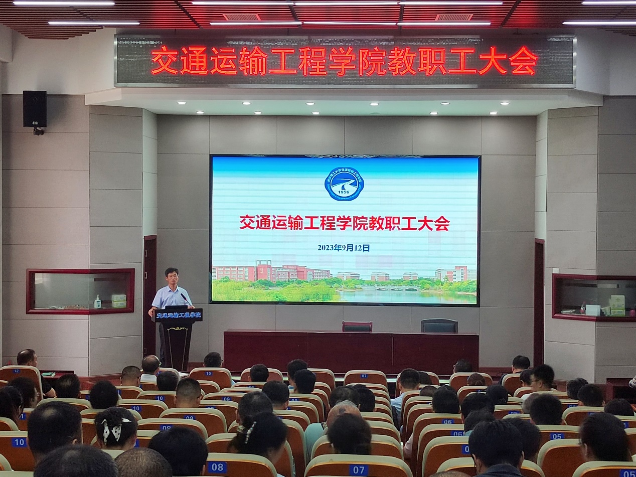 为扎实推进本科教育教学审核评估工作,落实学校“十四五”发展规划相关要求,深化审核评估内涵理解,切实做好本科教育教学审核评估准备工作,交通运输工程学院于2023年9月12日下午在工二B301召开全体教职员工开展“本科教育教学审核评估相关政策学习”活动。全院教师参会,刘朝辉书记主持。大会期间由院本科教育教学审核评估工作领导小组副组长王正武以“以评促建、以评促改、以评促算、以评促强”为主题,向全院教师介绍本科教育教学审核评估的特点、主要内容、工作安排,准确把握审核评估的精神和要求,全面了解评估指标内涵,全面梳理学校、学院本科教育教学改革和人才自主培养的主要问题。