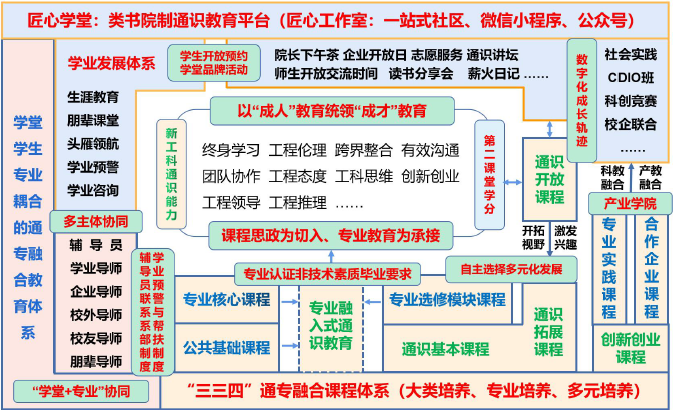 2、双轨并行,建立“学堂-学生-专业”耦合的通专融合教育体系。